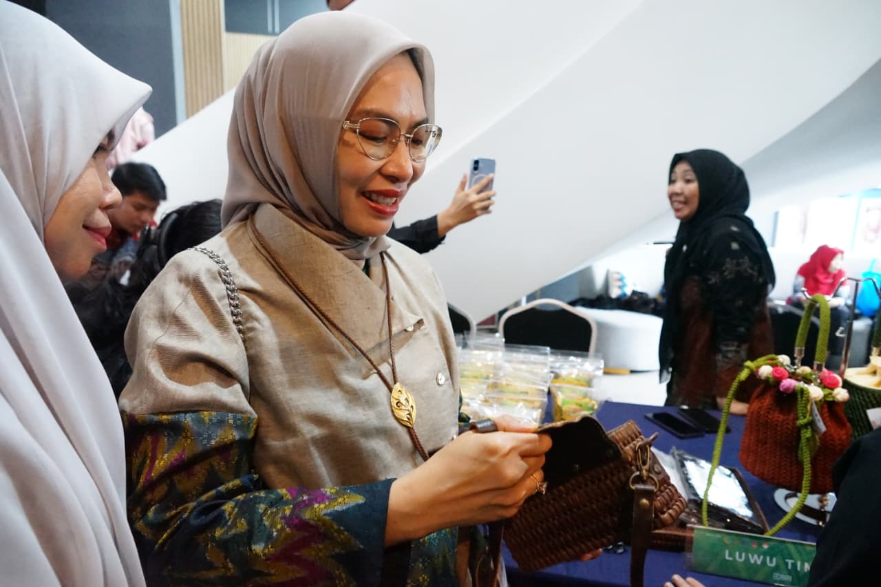 Luwu Timur, Sulsel- Ketua Dewan Kerajinan Nasional Daerah (Dekranasda) Kabupaten Luwu Timur, dr. Ani Nurbani Irwan menghadiri acara pembukaan UMKM FI3STA 2025 yang berlangsung di Hotel Mercure Makassar Nexa Pettarani, Jumat (14/11/2025).