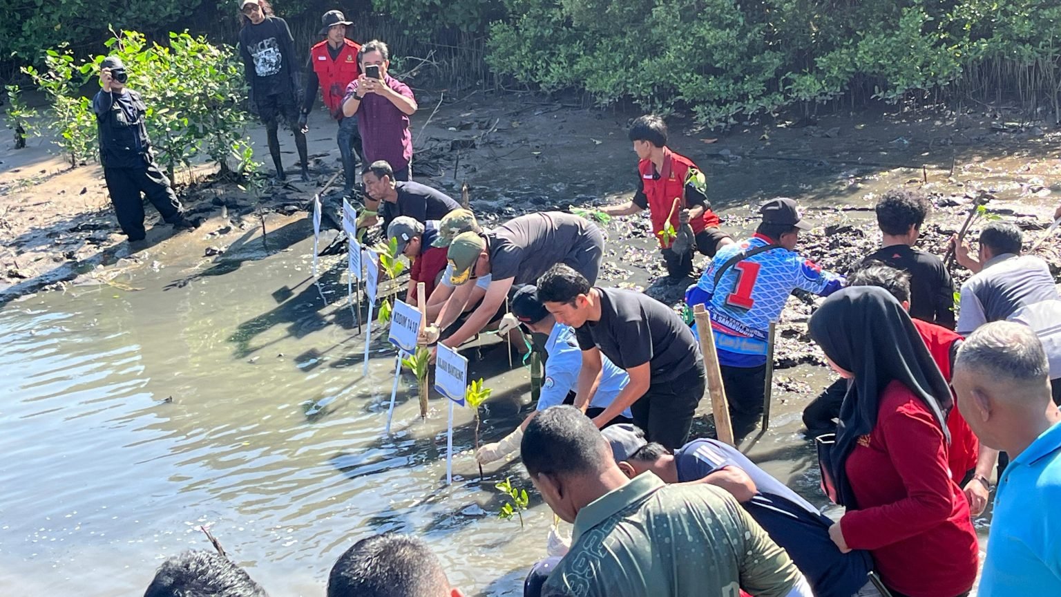 Bantaeng, Sulsel— Pemerintah Kabupaten Bantaeng bersama mahasiswa Kuliah Kerja Nyata (KKN) Universitas Hasanuddin (Unhas) Kabupaten Bantaeng, berkolaborasi dengan Yayasan Bantuan Hukum Perempuandan Anak (YBH PA) Bangkit menyelenggarakan aksi penanaman 5.000 bibit mangrove serta membersihkan kawasan Pantai Bombong, yang terletak di lokasi pacuan kuda Desa Biangkeke, Kabupaten Bantaeng.