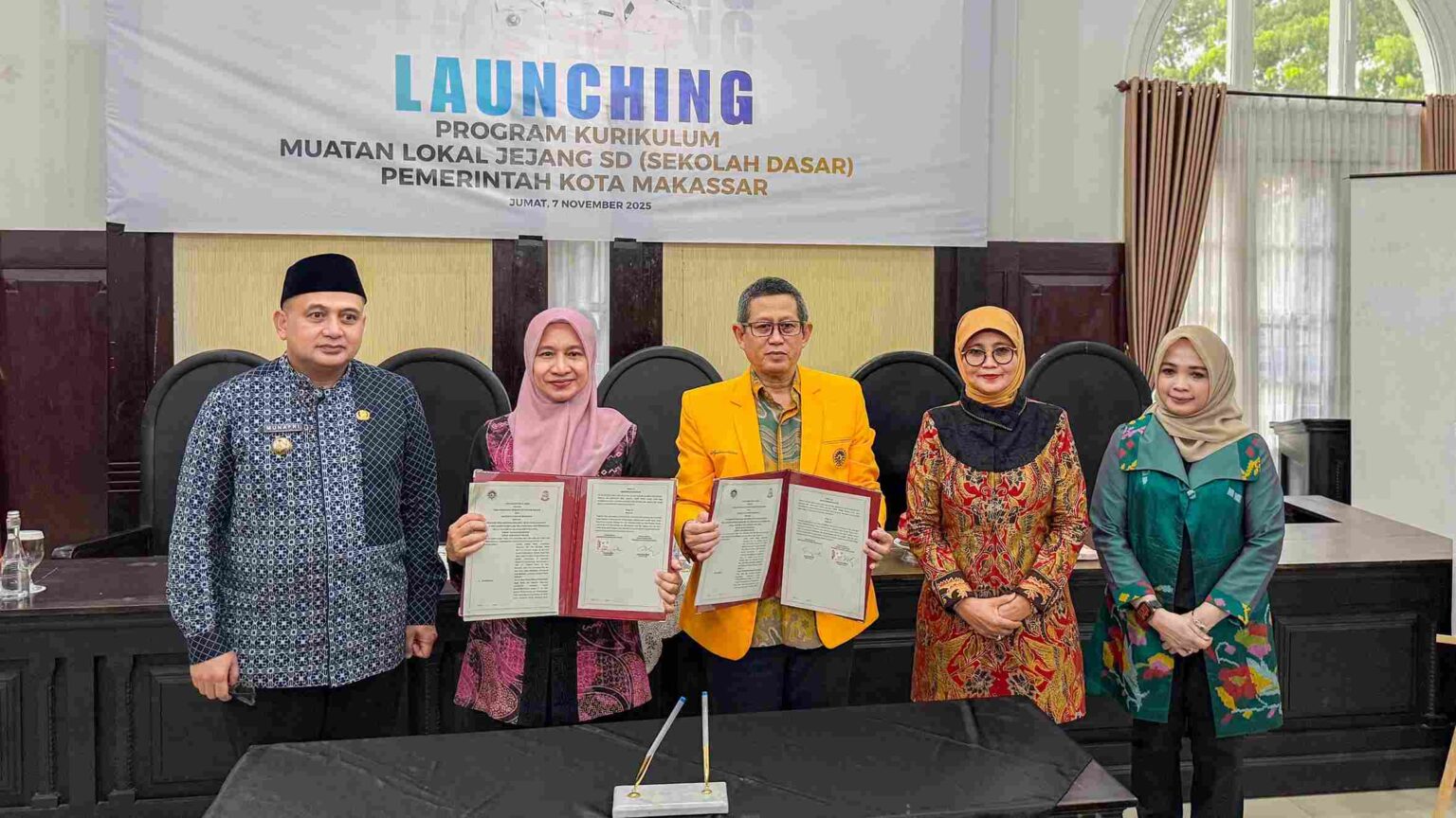 Penandatanganan berlangsung di Museum Kota Makassar, Jumat (7/11/2025), dan turut dihadiri Wakil Rektor I UNM Prof. Dr. Aslinda, Tim Kurikulum UNM, serta sejumlah pejabat Pemerintah Kota Makassar.