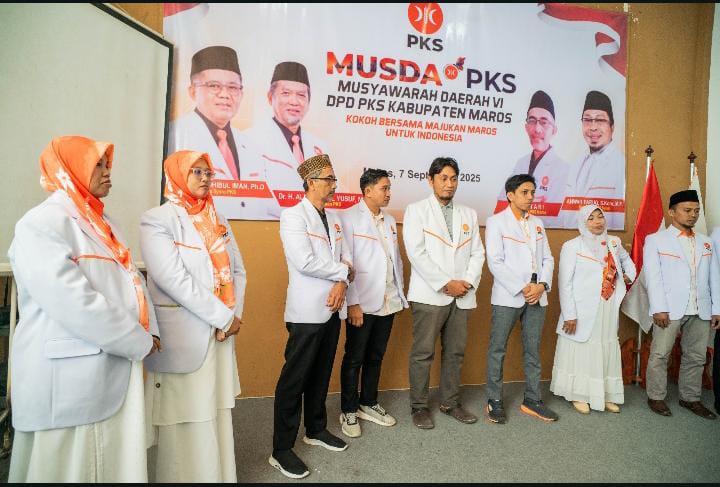 Maros, Sulsel — Partai Keadilan Sejahtera (PKS) Kabupaten Maros menggelar Musyawarah Daerah (Musda) VI tahun 2025 di Ballroom Warkop Alfayyad, Jalan Poros Maros–Makassar, Kecamatan Turikale, Kabupaten Maros, Minggu (7/9).
